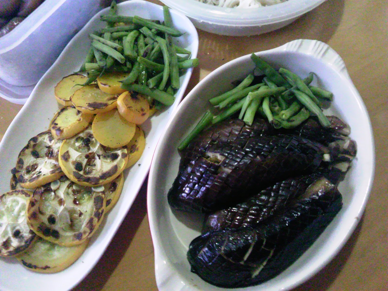 ○ズッキーニといんげんはじりじり焼き→岩塩ガリガリ&黒胡椒ガリガリ&えきすとらヴァージンオイルたらぁり♪