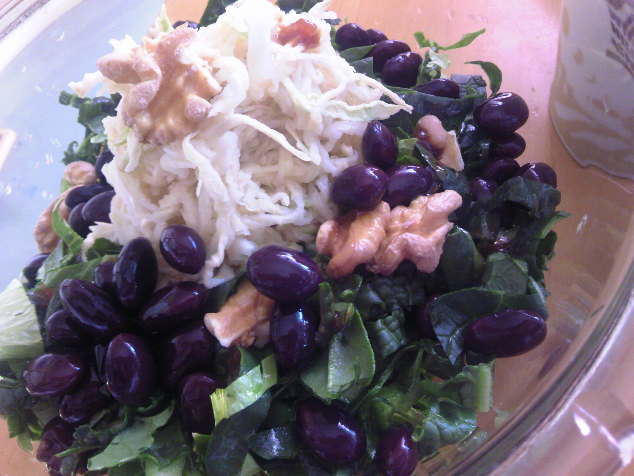 昼はフルーツ→サラダ山盛り→温野菜(おひたしや、スープや味噌汁だったりも)なにか炭水化物
