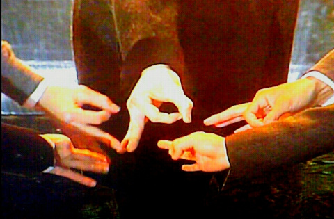 の跪いて手を引く仕草!