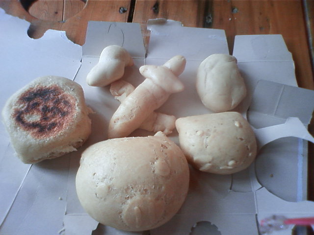 朝…味噌汁とごはんと漬物に何故かロールパン